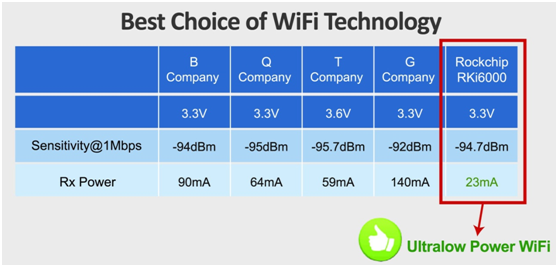 Low power WiFi has become a core factor in IoT. Last year, Rockchip launched ultralow WiFi RKi6000. Power consumption of RKi6000 is equivalent to BT4.0 LE (Low Energy). It can be applied in the fields of smart home, home appliance, home control center, and even medical care, transportation and military. This revolutionary low power WiFi solution has attracted great attentions of the entire industry.